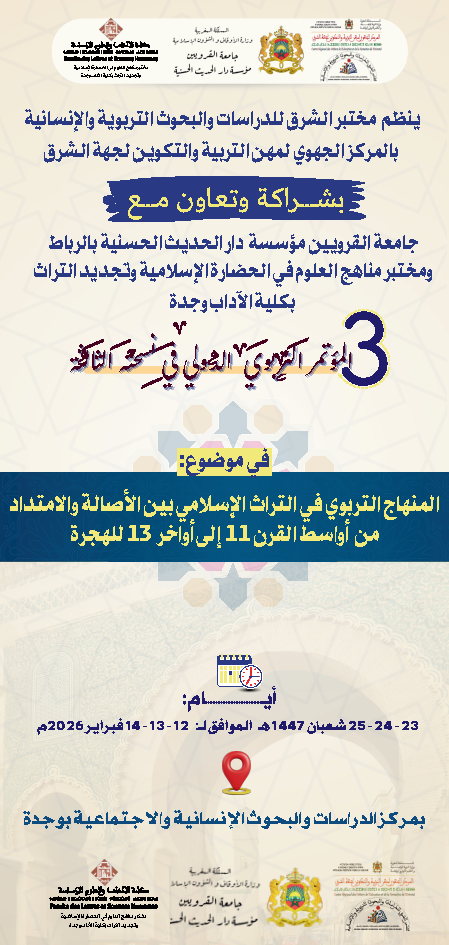 المؤتمر التربوي الدولي في نسخته التالثة في مضوع : المناهج التربوية في التراث الاسلامي بين الاصالة و الامتداد من اوساط القرن 11 الى اواخر 13 للهجرة