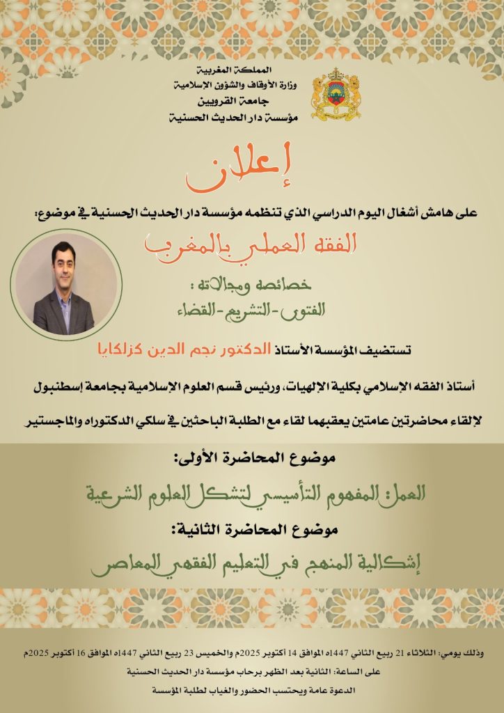 مؤسسة دار الحديث الحسنية تستضيف الأستاذ الدكتور نجم الدين كزلكايا في محاضرتين حول الفقه العملي بالمغرب